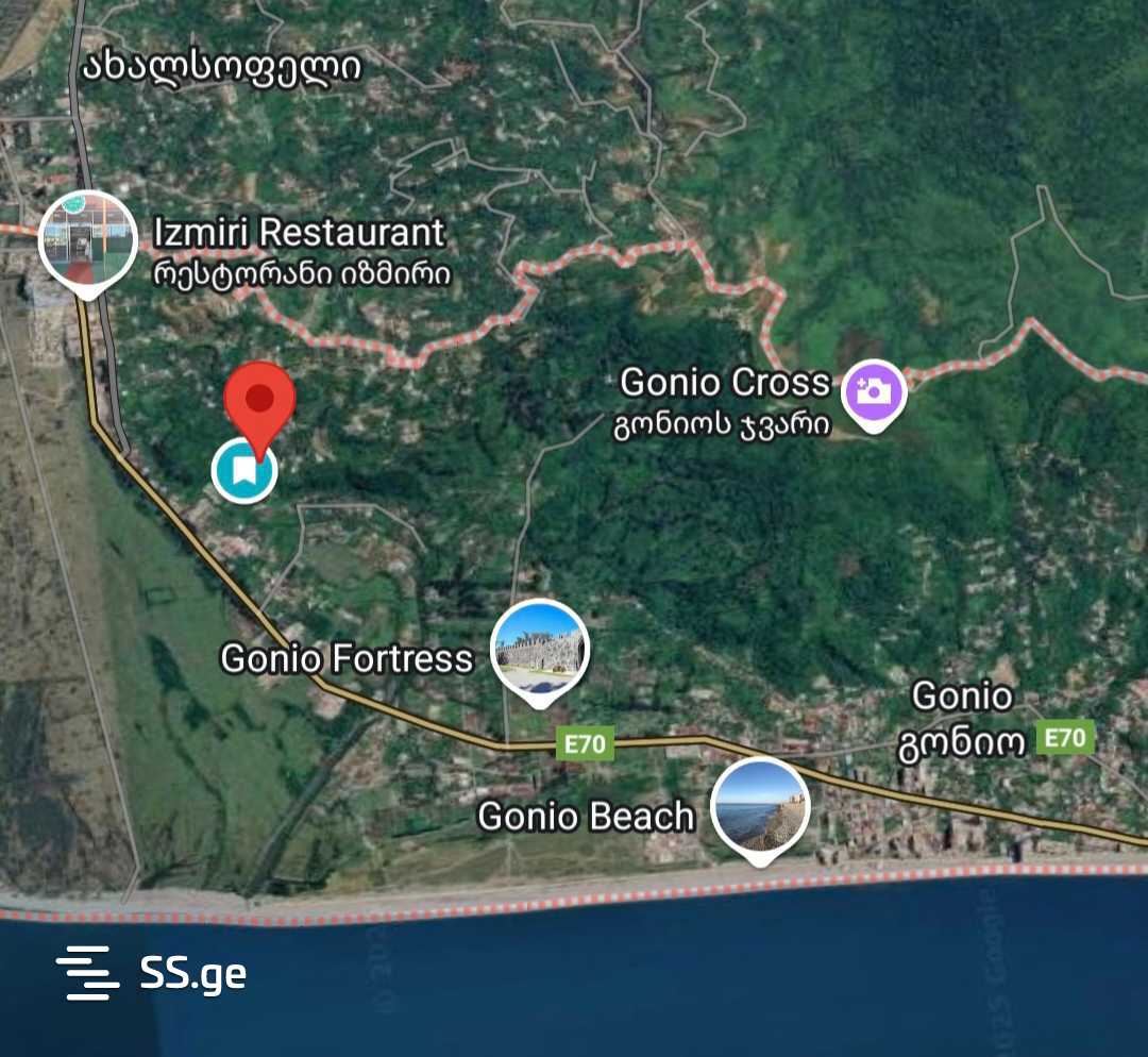 იყიდება მიწის ნაკვეთი ბათუმში, გონიოს მიმდებარედ, ევკალიპტების ხეივნიდან 250მ-ში, ქორწინების სახლ ერასთან შესახვევში. ზუსტი მისამართია: აფსაროსის შესახვევი, N7.