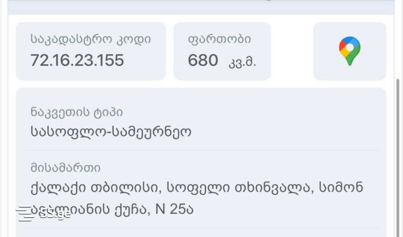 სასწრაფოდ იყიდება 680 მ² სამოსახლო მიწის ნაკვეთი თბილისის ერთ-ერთ ყველაზე პრესტიჟულ და სწრაფად მზარდ ლოკაციაში თხინვალაში, ავალიანის ქუჩაზე, ლისის ტბიდან 5 წუთის სავალზე. მოთხოვნადი ლოკაცია ელიტარული განაშენიანებით იდეალურია როგორც მშენებლობისთვის, ისე უძრავ ქონებაში უსაფრთხო ინვესტირებისთვის. ასფალტირებული გზა, მარტივი წვდომა ქალაქის ცენტრალურ უბნებთან, სწრაფად განვითარდებადი ინფრასტრუქტურა კერძო სკოლები, სუპერმარკეტები, კაფეები და სამედიცინო დაწესებულებები, ახლოსაა ბრიტანულ სკოლასთან. ულამაზესი დღის და ღამის ხედები, ხელმისაწვდომი ფასი, ყველა პირობაა ააშენოთ თქვენი მყუდრო და კომფორტული სახლი.