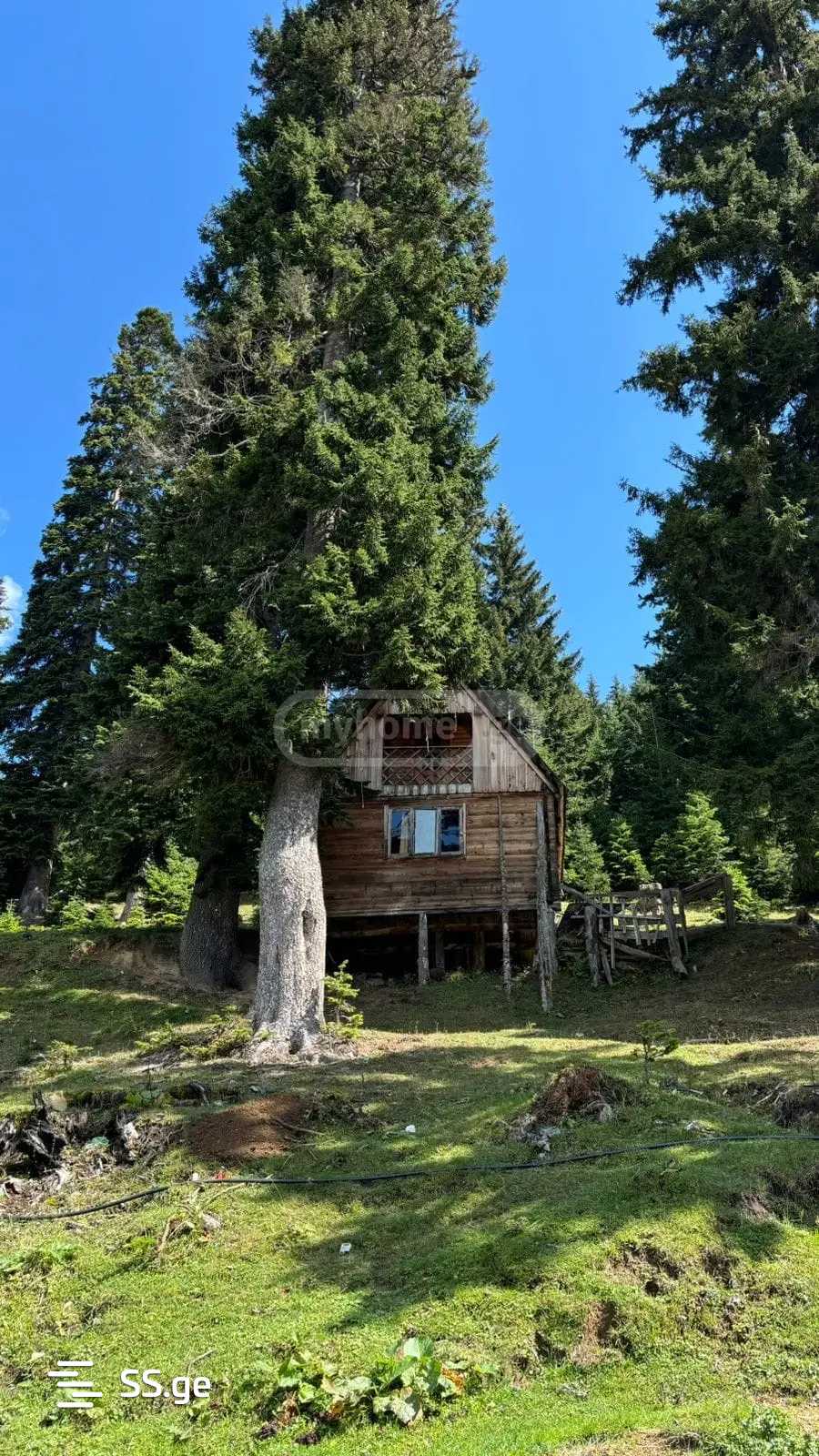 კოტეჯის ირგვლივ არის ნაძვნარი .