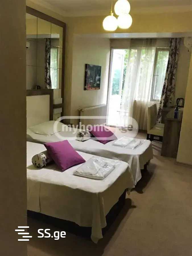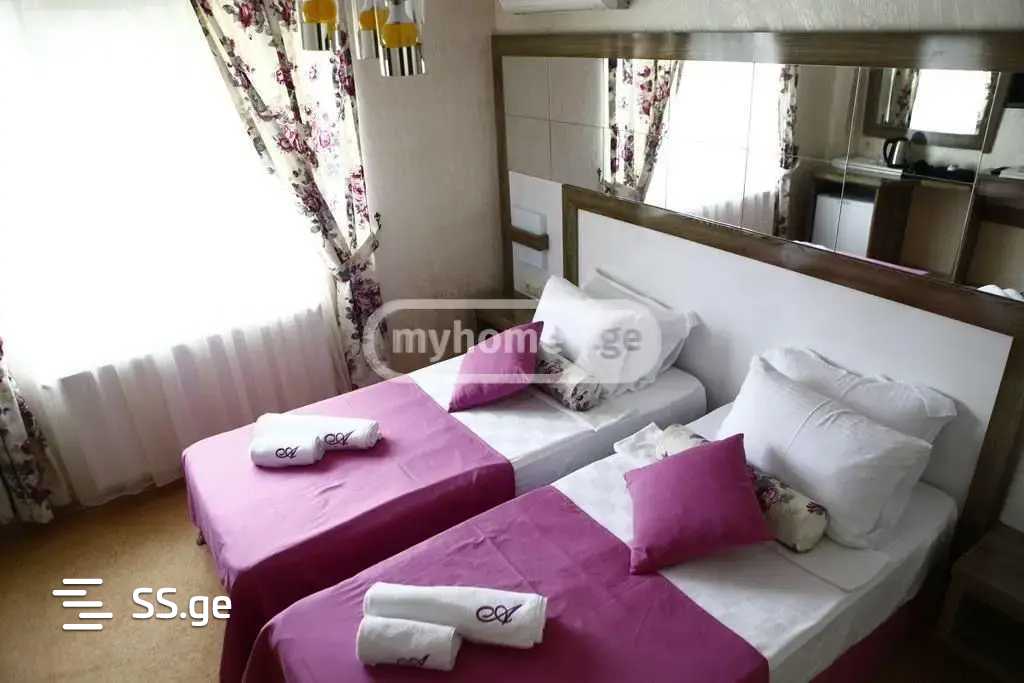 ქალაქის ცენტრში, ბათუმის ცენტრალური პარკისა და დელფინარიუმის უშუალო სიახლოვეს, ზღვიდან სულ რამდენიმე წუთის სავალზე, იყიდება მოქმედი, სრულად ფუნქციონალური 16-ნომრიანი სასტუმრო ულამაზესი გამწვანებული ეზოთი, ღია კაფითა და აუზით.