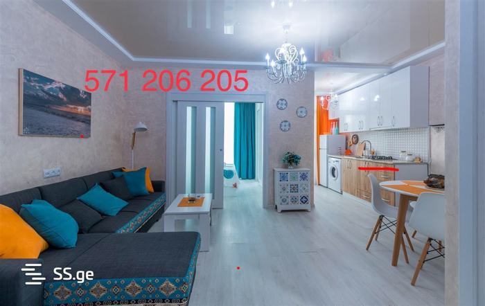 ქირავდება ახალი აშენებული ბინა დღიურად, რომელიც მდებარეობს 10-სართულიანი კორპუსის მეცხრე სართულზე. ბინის საერთო ფართობი შეადგენს 32 კვ.მ-ს და მოიცავს ერთ ოთახს და საძინებელს. ბინას აქვს ერთი აივანი, საიდანაც იშლება სასიამოვნო ხედები. თანამედროვე გარემო და ახალი მდგომარეობა უზრუნველყოფს კომფორტულ და მყუდრო დასვენებას. იდეალურია მათთვის, ვინც აფასებს სიმშვიდესა და ახალ გარემოს. ბინა განკუთვნილია მოკლევადიანი დასვენებისთვის და სრულად აკმაყოფილებს თანამედროვე ცხოვრების სტანდარტებს.