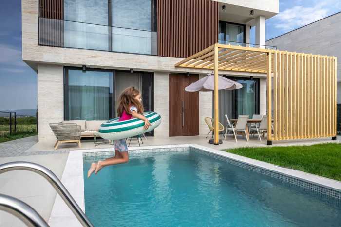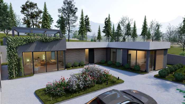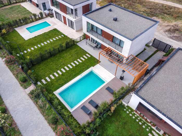 იყიდება სახლი პროექტი თბილისიდან დაახლოებით 20 წუთის (სავალ) გზაზე მდებარეობს, საგურამოს ცენტრიდან 7 წუთში სახლის ფართი 130 კვ.მ.-ია, რომელიც ორი სართულისგან შედგება. სახლში გათვალისწინებულია სტუდიოს ტიპის მისაღები და სამზარეულო, 3 საძინებელი და 3 სველი წერტილი 1 ეზო დაგხვდებათ შემოღობილი მწვანე მესერით, რომელიც მეტნაკლებად დაფარული იქნება ნარგავებით. ეზოში გათვალისწინებული გვაქვს ორი შესასვლელი, როგორც სამანქანე, ასევე საფეხმავლო. საფეხმავლო შესასვლელით პირდაპირ ბულვარზე მოხვედრა არის შესაძლებელი, სადაც მანქანა საერთოდ არ ხვდება. ხოლო სახლის მეორე მხრიდან მანქანებისთვის დამოუკიდებელი გზა გვაქვს გათვალისწინებული. კომპლექსში მთელ პერიმეტრზე გათვალისწინებულია საფეხმავლო/სასეირნო ბულვარი, სადაც მანქანა საერთოდ არ ხვდება და ჩვენი მაცხოვრებლები აღნიშნულ ბულვარს დღისით იყენებენ სპორტული აქტივობებისთვის და საღამოობით სასეირნოდ. ასევე ახალი ფაზის მშენებლობასთან ერთად მიმდინარეობს 330 მეტრი სიგრძის სარეკრეაციო პარკის განაშენიანება, სადაც გათვალისწინებულია საბავშვო და მოსასვენებელი კუთხეები