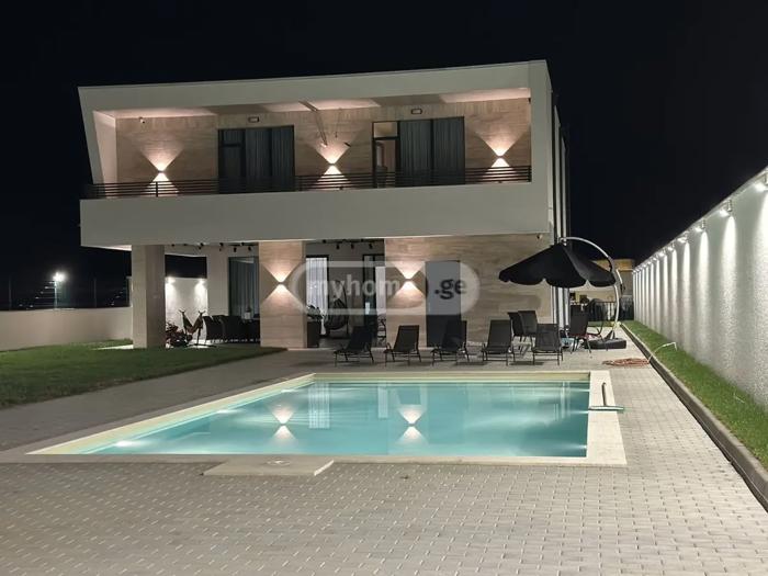 იყიდება საგურამოში, არასასოფლოსამეურნეო დანიშნულების მიწის ნაკვეთზე, ახალი აშენებული სამ ტერასიანი 1 სართულიანი სახლი 395კვ/მ 10 ოთახით, ყველა ოთახი ინდივიდუალური გასასვლელით ეზოში. ჰოლი, 5 საძინებელი ხუთივე ინდივიდუალური აბაზანით (ყველა სველი წერტილი ვიტრაჟიანი ფანჯრით) და საკუთარი გასასვლელით ეზოში, სტუმრის სავალი წერტილი, სამრეცხაო ოთახი, ტექნიკური ოთახი, მისაღები ოთახი, სასადილო, სამზარეულო + დახურული სამზარეულო, გადახურული ტერასა და აუზი. შენობას გაკეთებული აქვს თბოიზოლაცია (დათბუნება), აქვს ალუმინის ვიტრაჟები, საკუთარი არტეზიული ჭა (100მეტრი), ასევე შეყვანილია სოფლის წყალი, ცენტრალური კანალიზაცია, ცენტრალური გათბობა (იატაკის გათბობა სველი წერტილებში, მისაღებში, სამზარეულოში), საკაბელო ტელევიზია, WIFI ინტერნეტი, სიგნალიზაცია, კამერები, UPC მუდმივი კვება, რომელიც უზრუნველყოფს გათბობის, კამერების, ინტერნეტისა და რამოდენიმე ოთახის განათებას საჭიროების შემთხვევაში. ეზოში არის საცურაო აუზი 4/8-ზე, რომელსაც აქვს გათბობა და ღამის შიდა ნათება. ეზოში არის პარკირების სივრცე სამ ავტომობილზე. სახლში რჩება ავეჯი სურვილის შემთხვევაში. სახლამდე მიდის ასფალტის გზა. სახლის წინ არის საბაშვო სკვერი. ფასი: 600000$