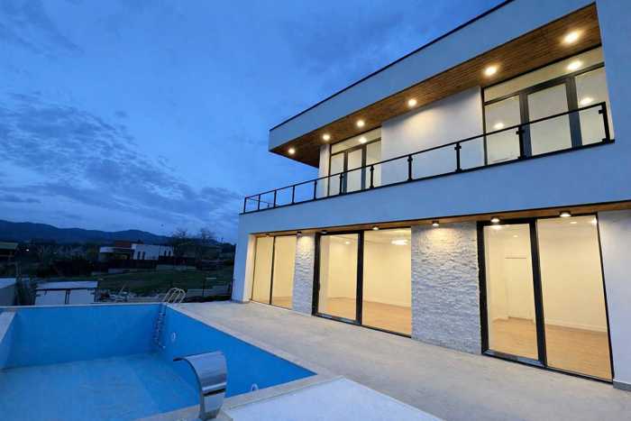 იყიდება საგურამოში, არასასოფლოსამეურნეო დანიშნულების მიწის ნაკვეთზე, ახალი აშენებული სამ ტერასიანი 1 სართულიანი სახლი 395კვ/მ 10 ოთახით, ყველა ოთახი ინდივიდუალური გასასვლელით ეზოში. ჰოლი, 5 საძინებელი ხუთივე ინდივიდუალური აბაზანით (ყველა სველი წერტილი ვიტრაჟიანი ფანჯრით) და საკუთარი გასასვლელით ეზოში, სტუმრის სავალი წერტილი, სამრეცხაო ოთახი, ტექნიკური ოთახი, მისაღები ოთახი, სასადილო, სამზარეულო + დახურული სამზარეულო, გადახურული ტერასა და აუზი. შენობას გაკეთებული აქვს თბოიზოლაცია (დათბუნება), აქვს ალუმინის ვიტრაჟები, საკუთარი არტეზიული ჭა (100მეტრი), ასევე შეყვანილია სოფლის წყალი, ცენტრალური კანალიზაცია, ცენტრალური გათბობა (იატაკის გათბობა სველი წერტილებში, მისაღებში, სამზარეულოში), საკაბელო ტელევიზია, WIFI ინტერნეტი, სიგნალიზაცია, კამერები, UPC მუდმივი კვება, რომელიც უზრუნველყოფს გათბობის, კამერების, ინტერნეტისა და რამოდენიმე ოთახის განათებას საჭიროების შემთხვევაში. ეზოში არის საცურაო აუზი 4/8-ზე, რომელსაც აქვს გათბობა და ღამის შიდა ნათება. ეზოში არის პარკირების სივრცე სამ ავტომობილზე. სახლში რჩება ავეჯი სურვილის შემთხვევაში. სახლამდე მიდის ასფალტის გზა. სახლის წინ არის საბაშვო სკვერი. ფასი: 550000$