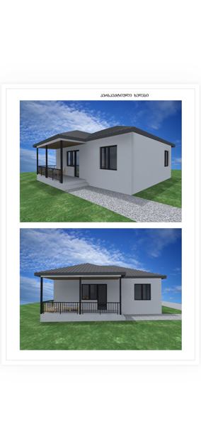 სახლი აშენებულია არასასოფლო სამეურნეო მიწის ნაკვეთზე, ბაზალეთის ტბის ხედით. ტექნიკურ-ეკონომიკური მაჩვენებლები • მიწის ნაკვეთის საერთო ფართი - 521.00 კვ.მ. • განაშენიანების ფართი - 123.2 კვ.მ. • საცხოვრებელი ფართი - 73.7 კვ.მ. • დამხმარე ფართი - 5.3 კვ.მ. • საზაფხულო ფართი - 30.3 კვ.მ. • საერთო ფართი - 109.3 კვ.მ. • მოცულობა - 451.5 მ3