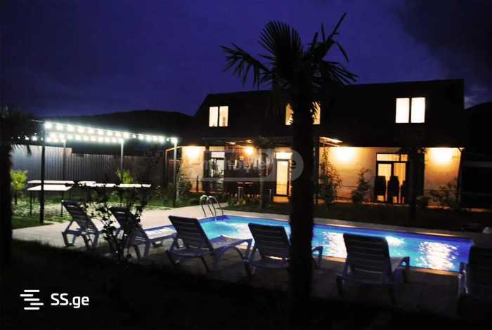ქირავდება დღიურად ახალაშენებული ორსართულიანი სახლი აუზით.ეზოს ფართი 1100კვ.მ. ასევე ამ სივრცეში დგას 120 კვ.მ დამოუკიდებელი შენობა(მისაღები,კლუბი,ჰოლი)ევრო რემონტით,ცენტრალური გათბობით,ვერანდით(30 კვ.მ)პარკინგით და კარგი ხედით.ტექნიკა:სარეცხის მანქანა, ჭუეჭლის სარეცხი მანქანა, მძლავრი ,,დინამიკი,, ეზოს განათება გირლიანდები, დიდი და პატარა მაყალი (გრილი ) შამფურები. ადგილზე დაგხვდებათ ყველა საჭირო ინვენტარი ნებისმიერი სახის წვეულებისთვის: დაბადებისდღე, კოპრორატიული, ქორწილი და ა.შ ფასი იცვლება დღეებისა და რაოდენობის მიხედვით