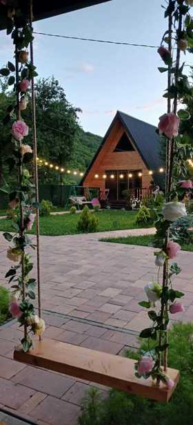 ქირავდება კოტეჯები ორიდან ოთხ პერსონაზე 150 ლარად და დიდი კოტეჯები ათ პერსონაზე 400 ლარად,