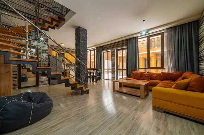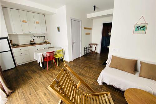 ქირავდება ახალი აშენებული სასტუმროს აპარტამენტი დღიურად, 32 მ² ფართობით და 1000 მ² ეზოთი. ნომერში არის ერთი საძინებელი. სულ ორი ოთახი, რაც უზრუნველყოფს კომფორტულ განთავსებას. ინტერიერში განთავსებულია მისაღები ოთახი და საძინებელი. დიდი ფანჯრები უზრუნველყოფს ბუნებრივ განათებას და სივრცეს. სახლს აქვს ტერასა, სადაც შეგიძლიათ ისიამოვნოთ სუფთა ჰაერით და სიმშვიდით. ფასადი თანამედროვეა და მიმზიდველი. ეს ადგილი იდეალურია მათთვის, ვისაც სურს განტვირთვა ბუნებაში და მშვიდ გარემოში.