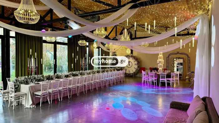 ქირავდება სახლი წვეულებისთვის. სივრცეში დაგხვდებათ: 3 კონდიცირებული დარბაზი (დარბაზი დინამიკებით, ლაზერებითა და დისკო ბურთით) ინვენტარით. მაგიდები, სკამები, ჭურჭელი. სრულად აღჭურვილი სამზარეულო, ეზოში მაყალი, 5 სველი წერტილი,3 საძინებელი და 1 მოსასვენებელი ოთახი, ასევე, სახლი არის სრულად აღჭურვილი ყველა საჭირო ინვენტარით 1200 კვ ეზო ღია აუზითა და ჯაკუზით, ფასი დამოკიდებულია სტუმრების რაოდენობაზე გვაქვს როგორც ფურშეტის, ასევე ქართული სუფრის მომსახურება, ასევე დიზაინი (დაბადების დღის, ქოწილის და სხვა ღონისძიების). ფასი ცვალებადია დღეებისა და რაოდენობის მიხედვით. L
