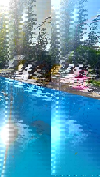 ქირავდება ვილა მუხიანში. მეტროდან 5 წუთის სავალზე. დაგხვდებათ: 1. დიდი აუზი (არ თბება თუმცა საუნის შემდეგ მაინც ჩადიან) 2. ბილიარდი; ორი ბუხარი - ერთი ეზოში; მეორე სახლში. 3. მშრალი საუნა 4. 3 საძინებელი (საწოლი 7) 5. 6 ოთახი წვეულების გასამართად საჭირო ოთახი როგორც პირველ ისე მეორე სართულზე. ნებისმიერ დროს შეგიძლიათ მოსვლა და დათვალიერება. ცენტრალური გათბობით, სმარტ ტელევიზორით, 3 საძინებლით, ბუხრებით, დიდი ეზოთი და ყველა საჭირო ინვენტარით. საუნა დამზადებულია ყველაზე მაღალი კლასის ფინური ცაცხვით ლაპლანდიიდან წვეულების გამართვა შესაძლებელია როგორც პირველ, ისე მეორე სართულზე. დარეკეთ