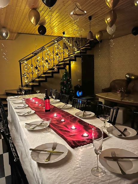 ქირავდება მთლიანი კომპლექსი. ფასში შედის: დახურული აუზი, ჯაკუზი, ფინური საუნა, რუსული ბილიარდისა და პოკერის პროფესიონალური მაგიდები, დინამიკი 2 კარაოკე მიკროფონით, მოსასვენებელი სივრცე, 4 სასტუმროს ნომერი (8 სტუმარი) 2 პანორამული ლიფტით და საზაფხულო ტერასა, სადაც განთავსებულია გარე ჯაკuzi და ავეჯი. გასართობი სივრცე გათვლილია 15 ადამიანზე, ფურშეტის შემთხვევაში ეტევა 20- 25 სტუმარი, ხოლო 4 საძინებელში 8 სტუმარი თავსდება. სურვილის შემთხვევაში კომპლექსში მენიუები, მზარეულის და მიმტანის მომსახურება. სტუმრების მიღება შესაძლებელია წინასწარი შეკვეთით.