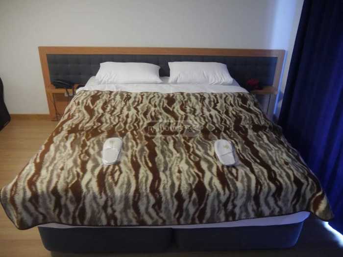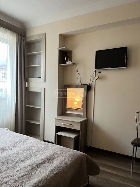 იყიდება ბინა სასტუმრო "ჰეისტეკ"ში, მე4 სართულზე, ხედით ტყისკენ. ნომერში არის ერთი საძინებელი (ორადგილიანი და ორსართულიანი საბავშვო საწოლით) და ერთი მისაღები (გასაშლელი დივანით), რომელშიც შეიძლება განთავსდეს 4+2 ადამიანი. ნომერი აღჭურვილია ყველა საჭირო ნივთით (ჭურჭელი, თეთრეული, საშრობი) და ელექტრო მოწყობილობით (მიკროტალღური, დიდი ტევადი მაცივარი, ტელევიზორი, მტვერსასრუტი, სარეცხის მანქანა). სადარბაზოში ფუნქციონირებს სამგზავრო ლიფტი. ეზო იზოლირებულია მანქანებისგან, რაც დამატებით უსაფრთხო გარემოს უქმნის თქვენს შვილს. კორპუსი მდებარეობს სასტუმრო ვიქტორიას მოპირდაპირე მხარეს, არ მისული სასტუმრო კრისტალამდე.