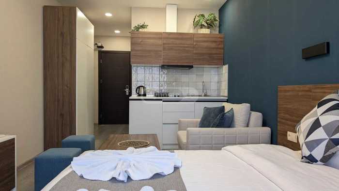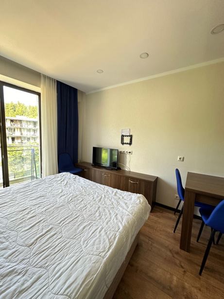 ბაკურიანში დიდველის მთების ძირში იყიდება 34 კვ.მ. სტუდიოს ტიპის ბინა სამზარეულოს კუთხით და აივნით. ბინა არის გარემონტებული, ავეჯითა და ტექნიკით გაწყობილი. ბინაში არის ინტერნეტი/ტელევიზია, ცენტრალური გათბობა და ცხელი წყალი. სასტუმროს აქვს რესტორანი, ტერასა, დახურული ავტოსადგომი, 24/7ზე კონსიერჟის, დაცვისა და დასუფთავების სამსახური. აღნიშნულ უძრავ ქონებას აქვს იდეალური მდებარეობა როგორც საინვესტიციოდ, ისე საცხოვრებლად.