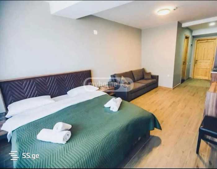 ავეჯით და ტექნიკით!!! მგზავრების კომპლექსში. 41 ან 42 მ2. კარგ მდგომარეობაშია. არასდროს ქირავდებოდა.აქვს თხილამურების სათავსო პირველ სართულზე