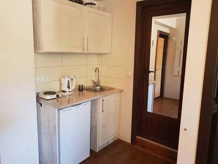 იყიდება ბინა, ხედით ტყისკენ. ნომერში არის ერთი საძინებელი (ორადგილიანი და ორსართულიანი საბავშვო საწოლით) და ერთი მისაღები (გასაშლელი დივანით), რომელშიც შეიძლება განთავსდეს 4+2 ადამიანი. ნომერი აღჭურვილია ყველა საჭირო ნივთით (ჭურჭელი, თეთრეული, საშრობი) და ელექტრო მოწყობილობით (მიკროტალღური, დიდი ტევადი მაცივარი, ტელევიზორი, მტვერსასრუტი, სარეცხის მანქანა). სადარბაზოში ფუნქციონირებს სამგზავრო ლიფტი. ეზო იზოლირებულია მანქანებისგან, რაც დამატებით უსაფრთხო გარემოს უქმნის თქვენს შვილს. კორპუსი მდებარეობს სასტუმრო კრისტალამდე.