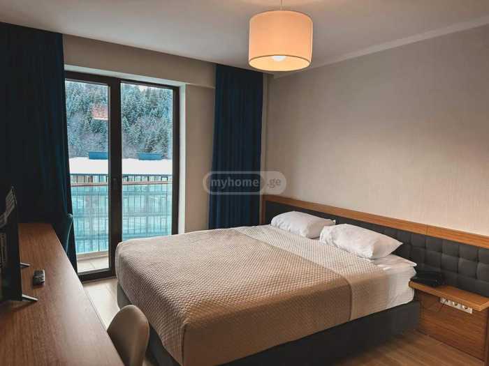 ბინა მდებარეობს ბაკურიანში საუკეთესო ლოკაციაზე, ზუსტად კრისტალის სასრიალო ტრასის წინ. კორპუსს ესაზღვრება ერთი მხრიდან ტყე სრულად ტყეში სასეირნო კეთილმოწყობილი ბილიკებით. მეორე მხარეს კი არის სასრიალო ტრასა. ასევე ახლოს არის რესტორნები, ქსელური მარკეტები, პარკი, გონდოლა - საბაგირო, ბავშვთა გასართობი სივრცეები და აშ. ბინაში არის ყველაფერი ახალი: სარეცხის მანქანა, ქურა, მაცივარი, ტელევიზორი, საწოლი კარადა და აშ. რჩება ყველაფერი ბინაში ტექნიკა ავეჯი და უამრავი წვრილმანი.