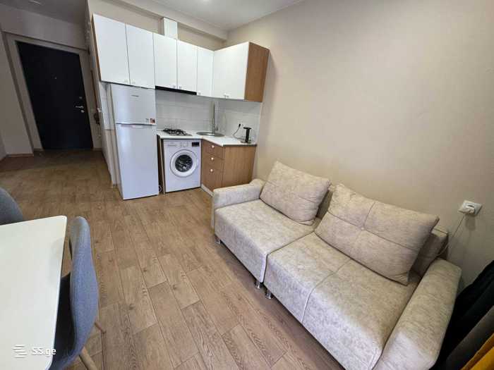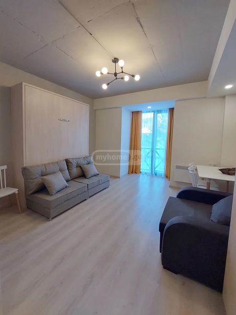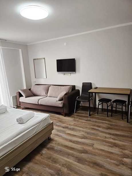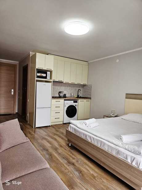 ბაკურიანი MIX" სასტუმროს ტიპის აპარტამენტები, წაქაძის ქ.#50, წრიულ გზაზე, მიტარბის გადასახვევთან 150 მ-ში. შენობას აქვს კეთილმოწყობილი მისაღები, პერსონალით, აღჭურვიალია კამერების 24/7 კონტროლით და უსაფრთხოების დამცავი სიგნალიზაციით, დღევანდელი ნორმების შესაბამისობაში. შენობას ემსახურება მიმღები 10:00 დან 18:00 სთ-მდე, დამლაგებელი. მოწყობილია ღია პარკინგი და ბავშვთა გასართობი სივრცე ეზოში. სტუდიოს ტიპის ნომერი არის განთავსებული მეორე სართულზე და იყურება აღმოსავლეთის მხარეს, აქვს მყუდრო ორიენტაცია ტყისკენ. ნომერი აღჭურვილია ყველა საჭირო ტექნიკით, მათ შორის ჭურჭლით. დგას გადმოსაშლელი საწოლი, რაც საშუალებას იძლევა, რომ დღის განმავლობაში ოთახი გამოყენებულ იქნას, როგორც მისაღები სივრცე რბილი ავეჯით