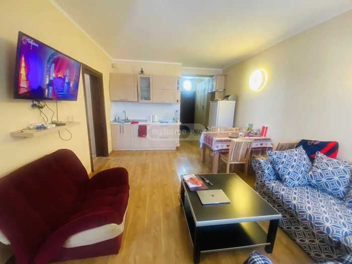 ავეჯით და ტექნიკით!!! მგზავრების კომპლექსში. 41 ან 42 მ2. კარგ მდგომარეობაშია. არასდროს ქირავდებოდა.აქვს თხილამურების სათავსო პირველ სართულზე