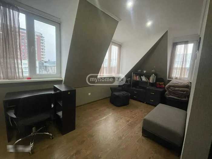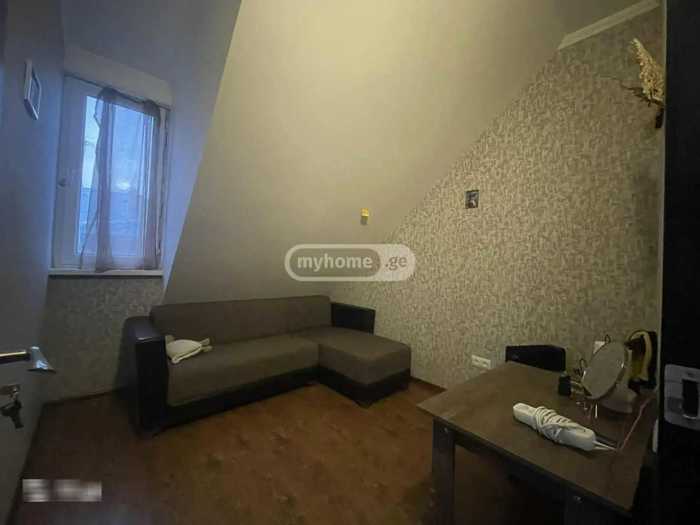 იყიდება სანზონაში, ღრმაღელის მეტროდან 5 წუთის სავალზე, ქსნის ქუჩის დასაწყისში, არასტანდარტული ბინა, რვა სართულიანის პირველ სართულზე. 5 მეტრიანი სიმაღლე გაყოფილია სამ დონედ, ქვემოთ მთლიანი სივრცე, ძალიან ნათელი, თბილი, მყუდრო, შლაგბაუმიანი ეზოთი. ფანჯრების წინ ჩერდება მანქანა, შესასვლელი ეზოდან, გამოდგება საოფისედაც.