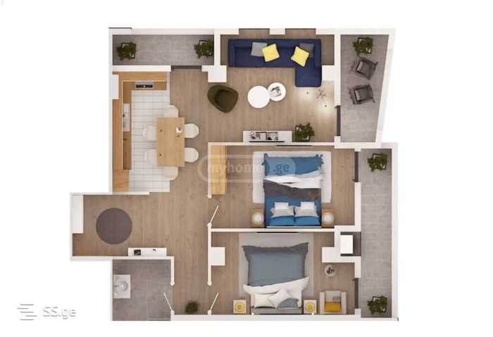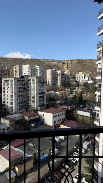 ბროწეულის ქ.41. 10 სართული, სულ 18 სართულიანი. 100 კვ/მ .2 საძინებელი,1 მისაღები, შემოსასვლელი სამზარეულო, 1 სველი წერტილი. კუთხის ბინა ირგვლივ აივანი. ყველა ოთახს თავისი აივანი აქვს ხედით მთელ თბილისზე