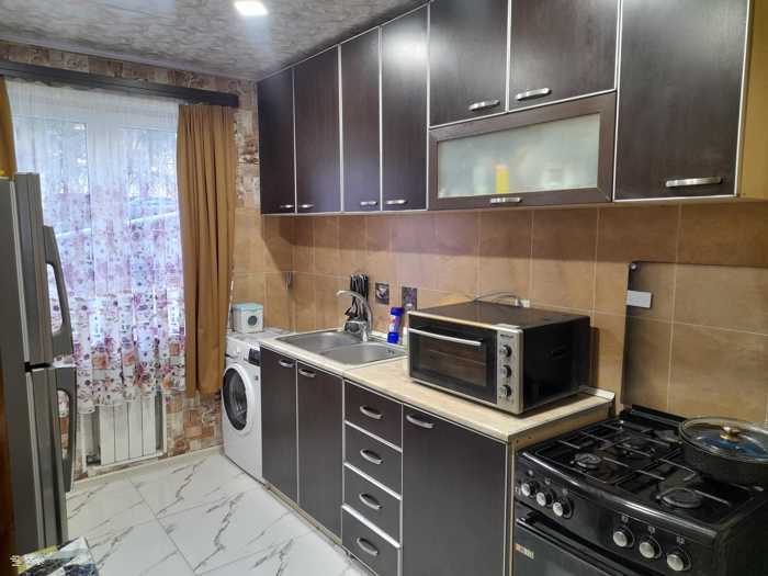 იყიდება ბინა! ბინა გამოირჩევა მისი მყუდრო მდებარეობით, არის ძალიან მშვიდ და წყნარ უბანში. ბინა არის ახალი რემონტით, ყველანაირად უზრუნველყოფილი. არის ცენტრალური გათბობა. ახლოს არის ყველანაირი სავაჭრო ობიექტი ახლოს: მაღაზიები, აფთიაქები და ა.შ. არის ძალიან ახლოს სატრანსპორტო ზოლთან, არის ახლოს სკოლებთან, და ძალიან ახლოსაა პოლიკლინიკასთან. ავეჯი ჩაშენებული რჩება, დანარჩენი მოლაპარაკებით. დამატებითი დეტალების, ან დაინტერესების შემთხვევაში დაგვიკავშირდით