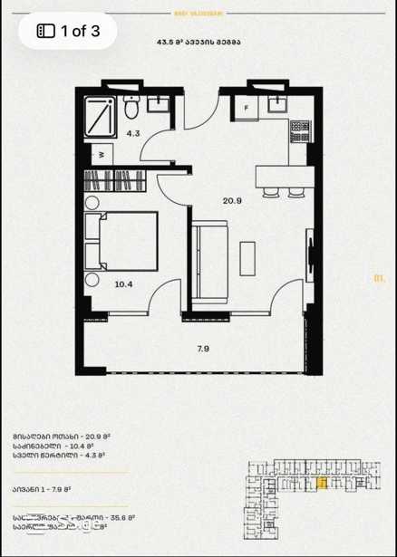 ვარ მესაკუთრე ვყიდი სასწრაფოდ ჩემთვის მქოდა შეძენილი პირადი პრობლემებიდან გამომდინარე იყიდება სასწრაფოდ. რუფ დეველოპეენტი.. ძალიან კარგი კოპანია .ოთახ ნახევრიანი 8 სართულზე სრულდება წელიწად ნახევარში და ვყიდი ძალიან დაბალ ფაში მხოლოდ დაიტერესებულებმა დამიკავშირდით … სასწრაფოდ იყიდება .ფასიი 40000 $ ამ ფასად ეს ბინა არის ნაჩუქარი.
