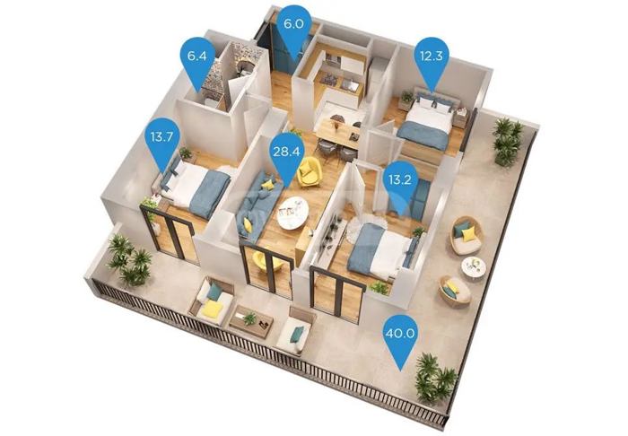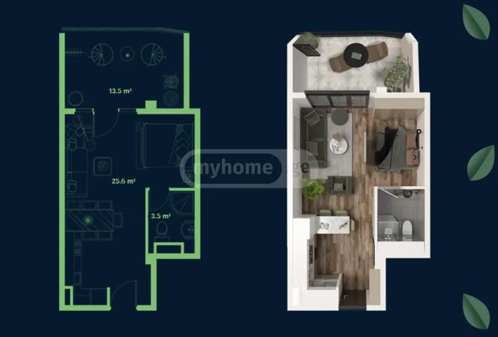 იყიდება პარკთაუნის კომპლექსში 43.1 კვ. მ ბინა სტუდიოს ტიპის