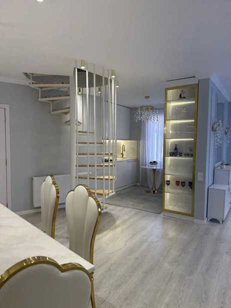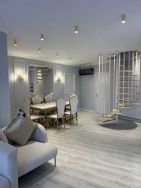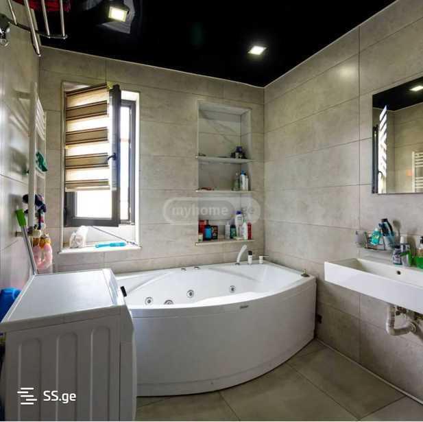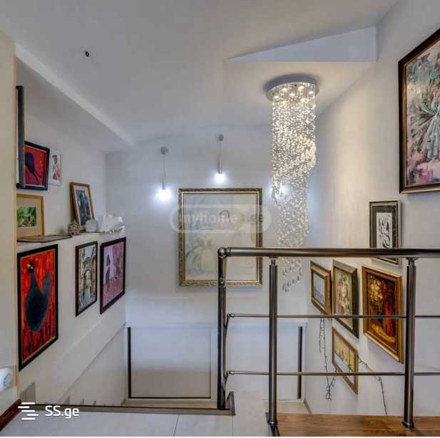 ბინა არის დუპლექსის ტიპის, პირველ სართულზე არის 1 საძინებელი (მასტერი) სამზარეულო 40კვ.მ ჰოლი 30კვ.მ ბუნებრივი მარმარილო იატაკქვეშა გათბობით, მეორე სართულზე არის ცენტრალური გათბობა და 5 საძინებელი 4სვ წერტილი. დიდი ვერანდა და წრიული აივანი. სართულზე 1 ბინაა. გარემონტებულია უმაღლესი ხარისხის რემონტით დენის თუ წყალგაყვანილობის სისტემებით, ორივე სართულზე ინდივიდუალური გათბობის და ელ მომარაგება განაწილების სისტემა, პირველ სართულზე შავი ალუმინის კარფანჯერა მეორეზე ასევე შავი 4 კამერიანი მეტალოპლასმასის კარფანჯერა, ბინაში არის ბუხარი და მთლიანობაში 6 სვ წერტილი, ცალკე სამრეცხაო-გარდერობის ოთახი და საქვაბე-საკუჭნაოს ოთახი