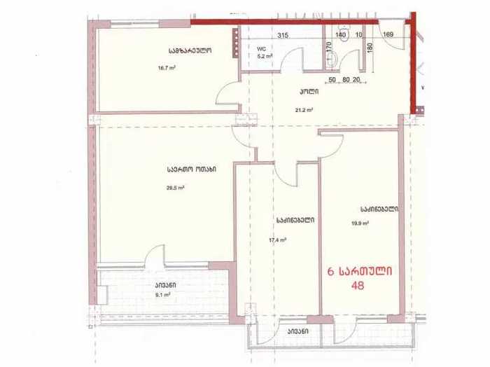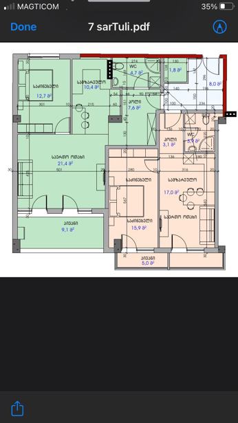 მწვანე კარკასი. ბინა თბილისის ერთ ერთ საუკეთესო ადგილზეა, რამოდენიმე წუთი რუსთაველის გამზირამდე და ასევე რამოდენიმე წუთი ფუნიკულიორის ტრამვაიმდე. ბინა მე-6 სართულზეა, მაგრამ ფაქტიურად სართული მერვე გამოდის, რადგან შენობის პირველი ორი სართული არასაცხოვრებელი ფართია. სურათებში იხილავთ რომ არაჩვეულებრივი ხედები იშლება ფაქტიურად მთელს თბილისზე. ორივე საძინებელს და ასევე მისაღებს აქვს აივანი. მისაღები ოთახის აივანი ფაქტიურად ვერანდაა (9.1 კვ/მ) და გადახურულია. ბინას აქვს ცალკე სამზარეულო (16.7 კვ/მ). სურვილის შემთხვევაში შეძლება მთავარ ოთახთან გაერთიანება და ასეთ შემთხვევაში გამოდის სტუდიოს ტიპის 46,2 კვ/მ ფართის ოთახი. ორი სველი წერტილი. ბინაში ყველა საჭირო გაყვანილობა და კომუნიკაცია გაკეთებულია უმაღლესი ხარისხის მასალით. ბინა საჭიროებს მხოლოდ თქვენი გემოვნებით გაკეთებულ რემონტს. აქვს პერსპექტივა 14კვ.მ. ფართის მიმატების