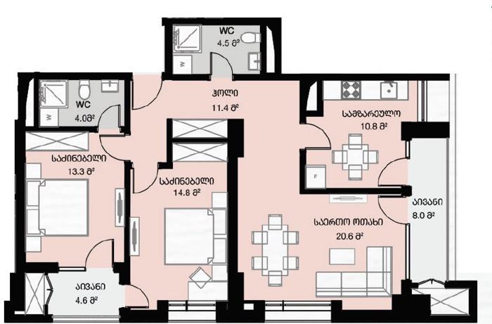 იყიდება 3 ოთახიანი ბინა საბურთალოზე