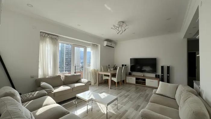 იყიდება 4-ოთახიანი (3 საძინებელი) ბინაში საბურთალოს центре, მეტრო „დელისიდან“ 5 წუთის სავალზე. 📍 ადგილმდებარეობა: ახალი აშენებული კორპუსი, მე-7-ე სართული (9-დან). 📐 ფართობი: 121 მ² ბინაში არის: • 3 საძინებელი • მისაღები და სასადილო • საგარდირობე ოთახი • 2 აივანი • 2 სველი წერტილი მახასიათებლები: • ახალი, მაღალი ხარისხის რემონტი • ცენტრალური გათბობა (იატაკი + კედლის რადიატორები) • კონდინციონერი • ბუნებრივი ხის პარკეტი და მარმარილო იატაკზე • სამზარეულო მთლიანად მარმარილოთი (კედლები, სტალიჩნიცა, იატაკი, სასადილო მაგიდა) • სამზარეულოს ავეჯი – აკრილი • ბუხარი ბუნებრივი გრანიტით • შიდა კარები MDF • სველი წერტილები და აივნები მოპირკეთებული კერამო გრანიტით კორპუსი და ეზო: • დახურული ეზო შლაგბაუმით და საერთო ავტოსადგომით • დახურული სადარბაზო დამაფონით • ლიფტი თინას უძრავი ქონება/Tina’s Real Estate 🏡
