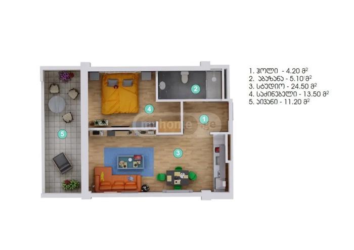 იყიდება სტუდიოს ტიპის ბინა ერთი საძინებლით, ახალ აშენებულ, დასრულებულ კორპუსში, ულამაზესი ხედებით ქალაქზე.