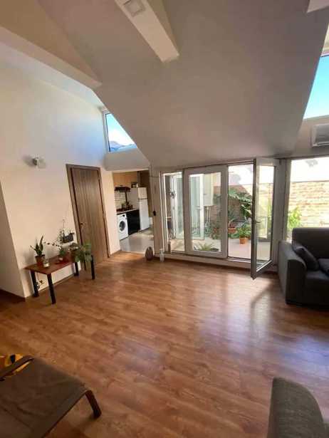 იყიდება ორ ოთახიანი, ძალიან ნათელი, მყუდრო და კომფორტული ბინა. არის ცენტრალური გათბობა და კონდიციონერი. მანსარდული ტიპის ბინა, არ არის დაშენება, არის სხვენსართული. ბინაში რჩება ყველაფერი.