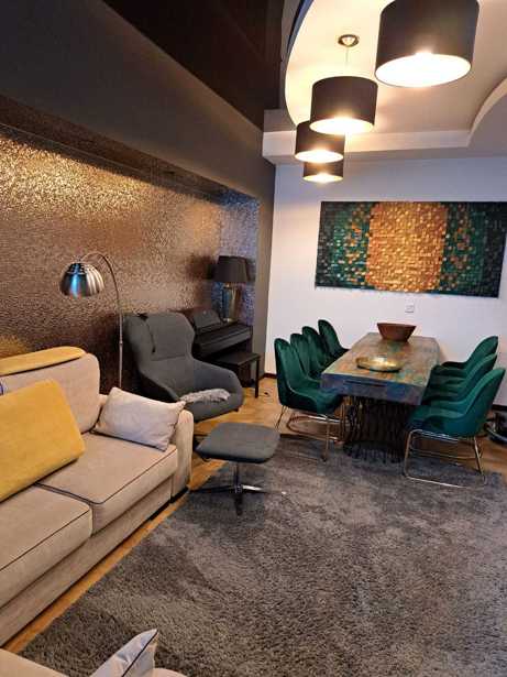 განიერი ბინა დიზაინერული რემონტით Domus 3 საცხოვრებელ კომპლექსში (თამარაშვილის ქ.) იყიდება 138 მ² ბინა 20-ე სართულზე პანორამული ხედებით. გეგმარება: 2 საძინებელი, კაბინეტი, ფართო მისაღები, სამზარეულო-სასადილო, 2 სველი წერტილი და ცალკე საკუჭნაო/სარეცხი ოთახი. ✨ უპირატესობები: • ახალი პრემიუმ-კლასის რემონტი მაღალი ხარისხის მასალებით. • იტალიური ავეჯი და Union-ის კარები. • იტალიური სამზარეულო Lube Cucine. • ბუნებრივი შპონი. • Jung-ის ჩამრთველები, Flos-ის განათება. • სრული კომპლექტი Bosch Accent Line ტექნიკა: ჩაშენებული ყავის აპარატი, მაცივარი, გამწოვი, ინდუქციური ქურა, ჭურჭლის სარეცხი მანქანა, ღუმელი. • სველი წერტილებში Hansgrohe და Villeroy & Boch (აბაზანა და შხაპი). • იატაკი: ნატურალური პარკეტი და იტალიური კერამიკა. • ჩაშენებული კონდიცირების სისტემა. • წყლიანი თბილი იატაკი. 🏙 ინფრასტრუქტურა: Domus 3 კომპლექსი მდებარეობს თამარაშვილის ქუჩაზე. ფეხით სავალ მანძილზე: Prime Fit ფიტნეს-კლუბი, საცურაო აუზი, სუპერმარკეტები Spar და Nikora, სილამაზის სალონები და ცენტრალური პარკი.