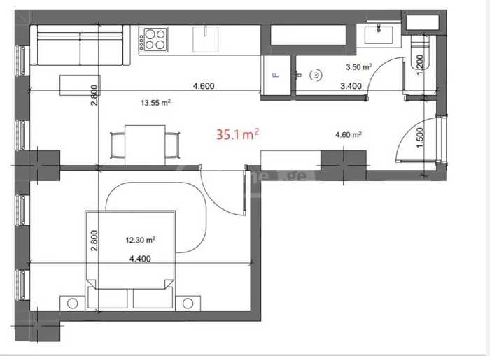ბინა ბარდება ივნისში, თეთრი კარკასის მდგომარეობით. იზოლირებული საძინებლით, აივნის გარეშე.