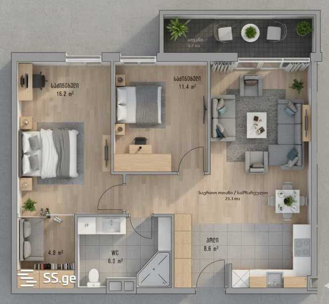 იყიდება 45.90 მ² ფართის ახალი ბინა თბილისში, დიდ დიღომში, თეიმურაზ 1- ის ქუჩაზე, ახალ სკვერთან, კარგ ადგილას.