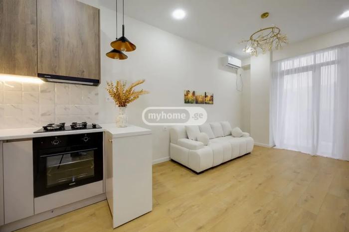 უცხოვრებელი ბინა ახალ აშენებულ კორპუსში, ჩაშენებული ავეჯით და ტექნიკით