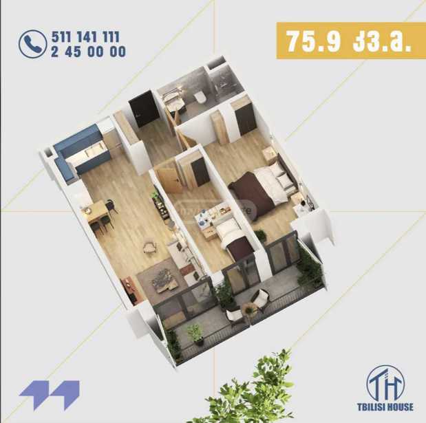 80 კვ.მ ფართის ბინა, ახალაშენებულ კორპუსში, თბილისში, ბობ უოლშის ქუჩაზე. ბინა არის ახალი გარემონტებული, თანამედროვე დიზაინით. იდეალურია ოჯახისთვის
