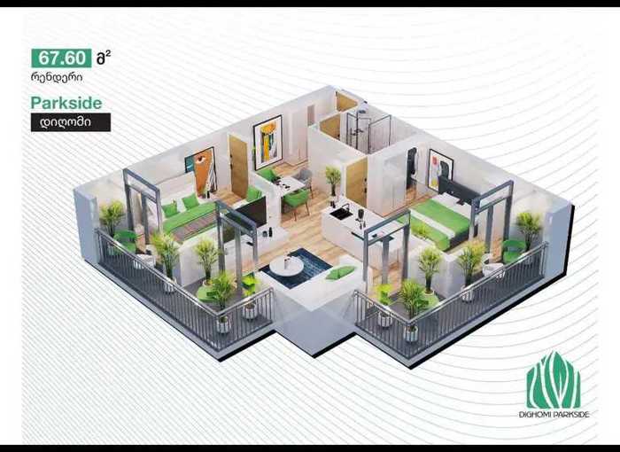 იყიდება ახალი აშენებული ბინა, რემონტის დაწყება შესაძლებელი იქნება მარტიდან. ბინა არის მწვანე კარკასის კონდიციაში. ბინა მდებარეობს დიდი დიღმის ახალ პარკთან. მასთან ახლოს არის ყველაფერი რაც საჭიროა, სკოლა, ბაღი, მაღაზიები, სავარჯიშო დარბაზები, ესთეტიკური ცენტრები, სამედიცინო დაწესებულებები... არის ნათელი ბინა 2 საძინებლით. ცალკე არის გამოყოფილი სამზარეულო კუთხე.