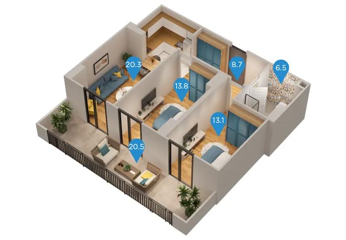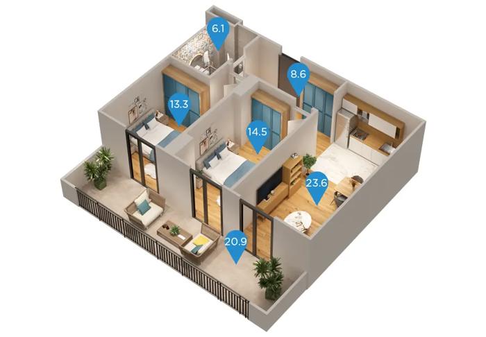 იყიდება ბინა ახალაშენებულ, არასტანდარტულ პროექტში, რომელიც მდებარეობს 9-სართულიანი კორპუსის მეოთხე სართულზე. საერთო ფართობი შეადგენს 60 კვ.მ-ს და მოიცავს 3 ოთახს, მათ შორის 2 საძინებელს. ბინას აქვს ერთი აივანი, რომელიც უზრუნველყოფს დამატებით სივრცეს დასასვენებლად. ნათელი ინტერიერი ქმნის მყუდრო და სასიამოვნო ატმოსფეროს. ბინა იდეალურია მათთვის, ვინც ეძებს კომფორტულ და თანამედროვე საცხოვრებელს ქალაქში. აქ შეგიძლიათ შექმნათ თქვენი ახალი სახლი მშვიდ და უსაფრთხო გარემოში.