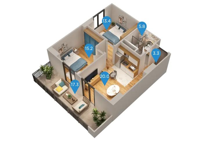 იყიდება 2 ოთახიანი ბინა ლისის ტბაზე