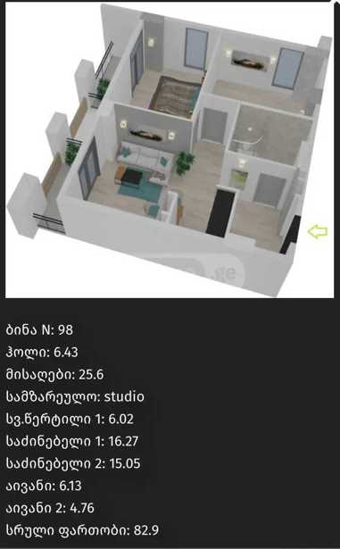 იყიდება 49 მ² ახალი აშენებული ბინა სანდრო ეულის ქუჩაზე. ახალი რემონტით, თანამედროვე დიზაინით. კორპუსი არის ახალი აშენებული, მდებარეობს მეტროსთან ახლოს , ფეხით 7-10 წუთის სავალზე. ბინა არის აღმოსავლეთის მხარეს, მზიანი, ნათელი. რემონტი, შესრულებულია მაღალი ხარისხის მასალებით. რჩება ავეჯი-ტექნიკა. იდეალურია ოჯახისთვის ან გასაქირავებლად.