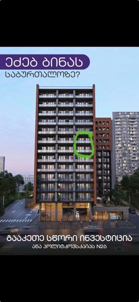 🏙️ იყიდება ახალი, მყუდრო და ულამაზესი 3-ოთახიანი ბინა საბურთალოზე! 77კვ.მ აივნის ფართობი 13,8 შიდა ფართი:62,5 📍 მისამართი: ა. პოლიტკოვსკაიას ქუჩა №33ც, არქის D ბლოკი, 10-ე სართული ✨ ბინა არის ახალგარემონტებული, აღჭურვილი სრული ავეჯითა და თანამედროვე ტექნიკით. აქვს დიდი აივანი ქალაქის ულამაზესი ხედით, რაც ბინას განსაკუთრებულ ატმოსფეროს სძენს. 🏡 კომპლექსს გააჩნია დიდი კეთილმოწყობილი ეზო, ხოლო გარშემო არის ყველა საჭირო ობიექტი — აფთიაქი, Carrefour, სილამაზის სალონი, საბავშვო სათამაშოების მაღაზია, ხილბოსტანი, გრუმინგი და სხვა მრავალი კომფორტი ყოველდღიური ცხოვრებისათვის. 🚇 მდებარეობს უნივერსიტეტის მეტროდან სულ რაღაც 100 მეტრში, დაცული ეზოთი, უსაფრთხო და მყუდრო გარემოთი, მეგობრული მეზობლებით. სახლში რჩება ყველაფერი.