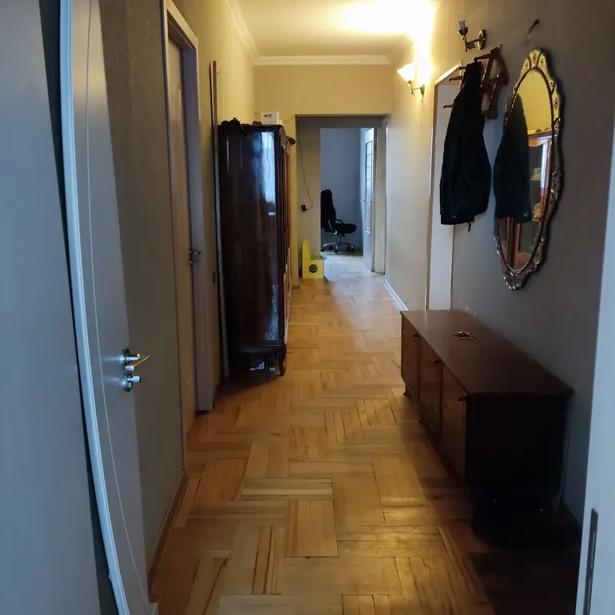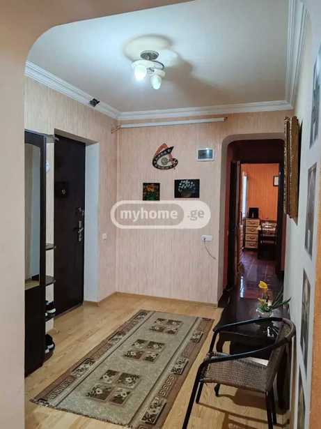 , ვყიდი ძალიან ნათელ, კომფორტულ, მყუდრო, ჩეხური პროექტის კუთხის ბინას, ზამთარში თბილია, ზაფხულში გრილი. იყიდება სრულად ავეჯით და ტექნიკით. ჩაშენებული კარადებით, ჩაშენებული საწოლით, ცალკე საძინებლით, კონდენციონერით და ცენტრალური გათბობით. მოვლილი სუფთა დახურული სადარბაზო(ჩიპით და სათვალთვალო კამერებით), ეზოც შლაგბაუმით იკეტება, პარკინგის ადგილით. სახლს აქვს დამხმარე ფართი (ჩულანი) კაპიტალური თაროებით და აივნით, ჩულანშივე დგას გათბობის ქვაბი. 0 სართულზე აქვს სარდაფი 8 კვ, პატარა ფანჯრით.