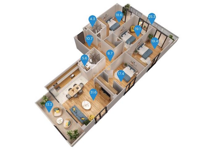იყიდება თბილისი მოლთან, ელიტარულ კომპლექსში, 4 ოთახიანი ბინა 3 საძინებლით 3 სვ.წერტილით, აქედან 2 საძინებელი არის მასტერი, აქვს პარკინგი და უსაფრთხოების კამერები. კომპლექსში არის გამწვანებული ეზო, აუზი და სტადიონიფასი 280000$