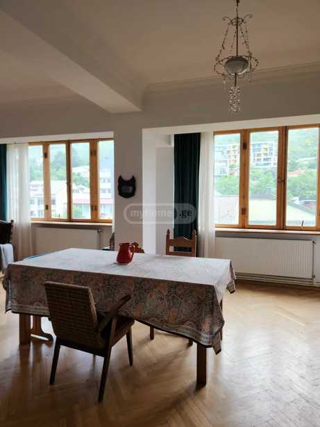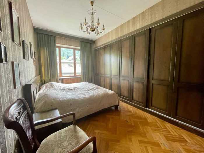 ვაკეში, აბაშიძეზე, ხედით ქუჩაზე ( აბაშიძეზე) და მთაზე: გამჭოლი- 50-იან წლებში აშენებული სტალინური სტილის სახლი, მე4 სართული, მყუდრო და ნათელი ბინა დუპლექსის სტილში: 3 დიდი ოთახი, 3 საძინებელი, კაბინეტი (ან მე4 საძინებელი), 2 სველი წერტილი, სამზარეულო,სათავსოები, ბარი, მოქმედი ბუხარი, ბუნებრივი აირი და ცენტრალური გათბობა.