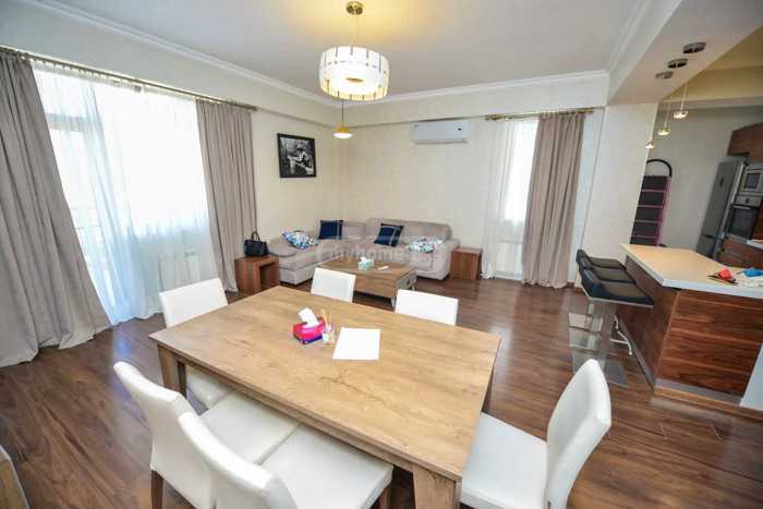 ნათელი, მშვიდი, ჰაერიანი ბინა გარემონტებული კარგი მასალებით. საუკეთესო ბინა, არქიტექტუტურულად დაგეგმილი და განხორციელებული დაყოფით და რემონტით. ძალიან ნათელი, კარგი ტერასით, დიდი სამზარეულო და მისაღები, განიერი გასაგორებელი კარი გადის მზიან ტერასაზე, ამით საზაფხულო ყოველდღიური მოხმარება სასიამოვნოა; ორივე საძინებელს აქვს აივანი; კარ - ფანჯრები სრულად შეცვლილი, მაღალი ხარისხის რემონტი. ავეჯით უავეჯოდ. ბინის სუფთა ფართი არის 95.22მ2 ამას ემატება სათავსოს და კორიდორის გადაფორმება 10 მ2. მყიდველს სულ გაუფორმდება 105.22 მ2.