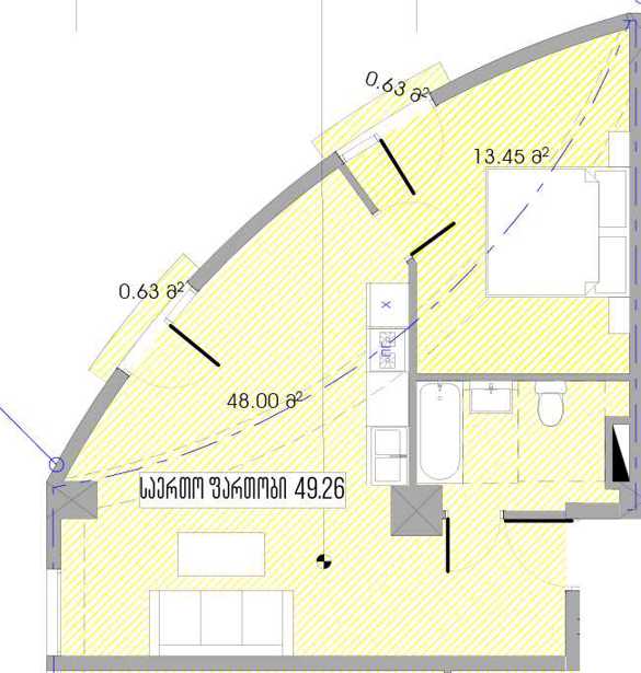 იყიდება ბინა პროექტში, რომელიც ამჟამად მშენებარე მდგომარეობაშია. ბინა მდებარეობს 9-სართულიანი კორპუსის პირველ სართულზე და მისი საერთო ფართობი შეადგენს 33.79 კვ.მ-ს. ბინაში განთავსებულია ერთი ოთახი რაც იდეალურია როგორც ინდივიდუალური საცხოვრებლისთვის, ასევე ახალგაზრდა წყვილისთვის. ბინას აქვს ერთი აივანი, რომელიც დამატებით სივრცესა და სიმყუდროვეს ქმნის. მშენებლობის მიმდინარეობა საშუალებას გაძლევთ თავად განსაზღვროთ ინტერიერის დიზაინი და მოიწყოთ სახლი თქვენი სურვილის მიხედვით. ეს ბინა შესანიშნავი არჩევანია მათთვის, ვინც აფასებს სიმშვიდესა და პერსპექტივას.