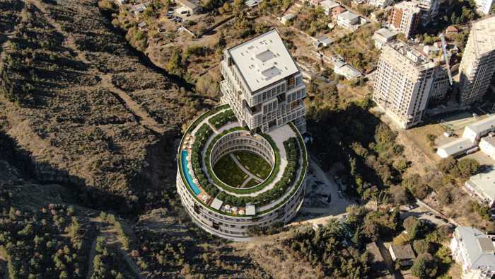 სასტუმრო ტიპის კომპლექსი თბილისის დიპლომატიურ უბანში, კრწანისში. პროექტის შემუშავებისას მთავარი ყურადღება მიექცეს ჯანსაღი საცხოვრებელი გარემოს შექმნას, ამიტომ შეირჩა ულამაზესი ტყეებით, ფიჭვებით და მთებით გარშემორტყმული ტერ პროექტის საერთო ფართობია 60,000 მ², ხოლო კომპლექსი შედგება 2 ბლოკისგან: სასტუმრო (470 ოთახი) და საცხოვრებელი (250 ბინა). განლაგება (რემონტით): სტუდიო (სასტუმრო რეზიდენცია) - 40.3 მ²/ ფასი $110,000 კეთილმოწყობა: ავტოსადგომი 335 მანქანისთვის კონსიერჟის მომსახურება სავაჭრო ცენტრი აფთიაქი და ბანკი ფიტნეს ცენტრი და სპა კომპლექსი აუზები (პანორამული და შიდა) ბარი და რესტორანი საბავშვო მოედანი რეკრეაციული ზონები ფიჭვის ტყე კომპლექსის სიახლოვეს დიდი რაოდენობის დიპლომატიური მისიის არსებობის გამო: საფრანგეთი, დიდი ბრიტანეთი, კატარი, ბულგარეთი, ლიტვა, ბელორუსი, აზერბაიჯანი, იაპონია და ირლანდია, ამ ტერიტორიაზე გაქირავების მოთხოვნა მოსალოდნელია მთელი წლის განმავლობაში, ზრდის ტენდენციით.