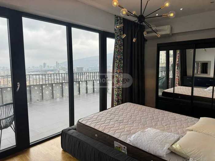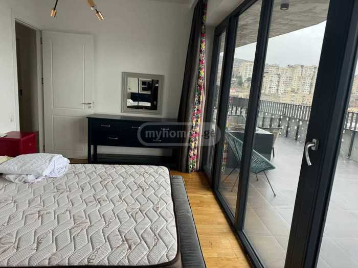 იყიდება ბინა ახალ აშენებულ კორპუსში, არასტანდარტული პროექტით. ბინის საერთო ფართობი შეადგენს 76 კვ.მ-ს და მდებარეობს მერვე სართულზე. ბინაში არის სამი ოთახი, ორი საძინებელი და სტუდიო ტიპის სამზარეულო. ბინას აქვს ორი აივანი, რაც უზრუნველყოფს ბუნებრივი სინათლისა და ჰაერის კარგ ცირკულაციას.